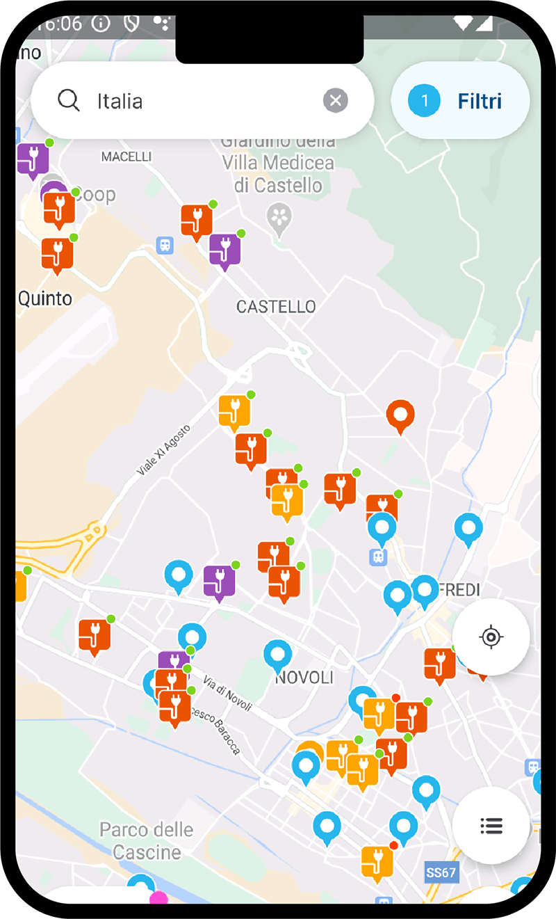 Trova la stazione di ricarica convenzionata più vicina a te in qualsiasi città o paese europeo grazie alla nostra app gratuita.